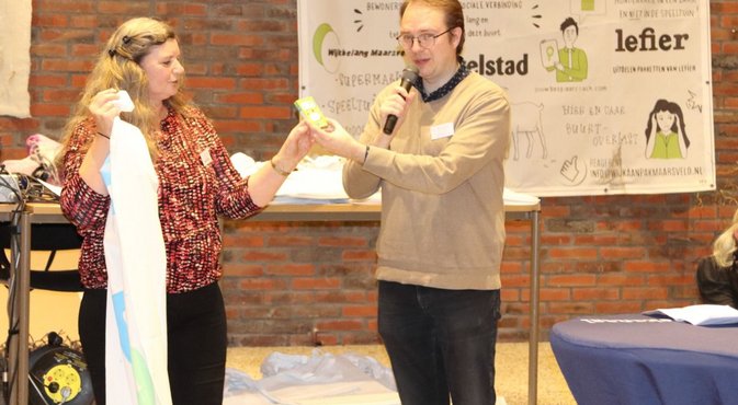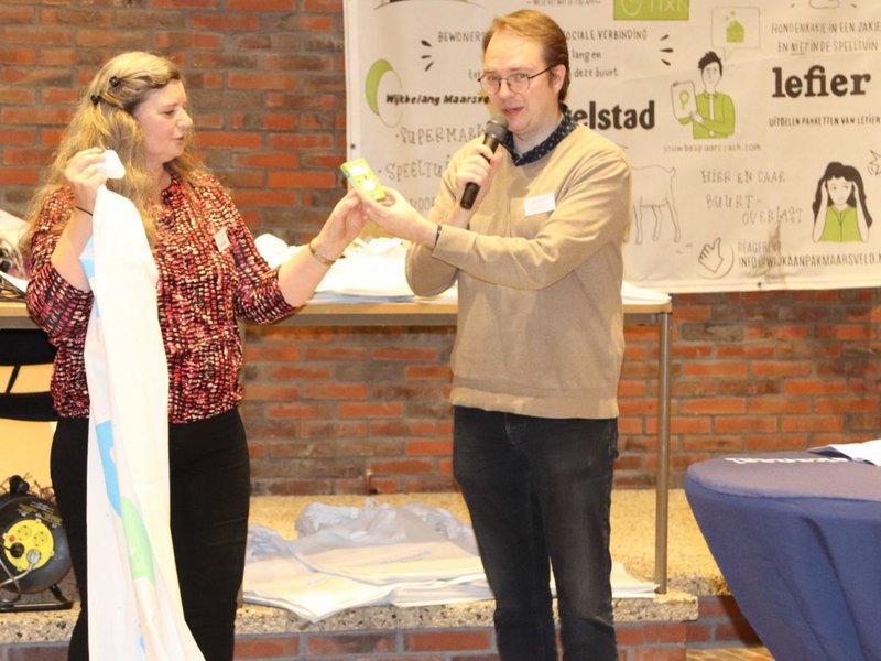 Aan het einde van de avond kreeg wijkwethouder Egbert Hofstra het allereerste exemplaar van het Maarsveld maakt het afvalkwartet. Een speciaal kwartet bedacht door wijkbewoner Nanda Groote en speciaal gemaakt voor alle inwoners van Maarsveld. Het kwartet valt binnenkort bij alle bewoners uit de wijk Maarsveld op de mat!