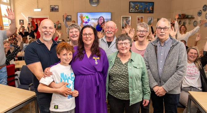 ’s ochtends hun onderscheiding. In de middag werd in Buurtcentrum Maarswold een Koninklijke Onderscheiding uitgereikt aan mevrouw Angela Jongeling‑Smit.